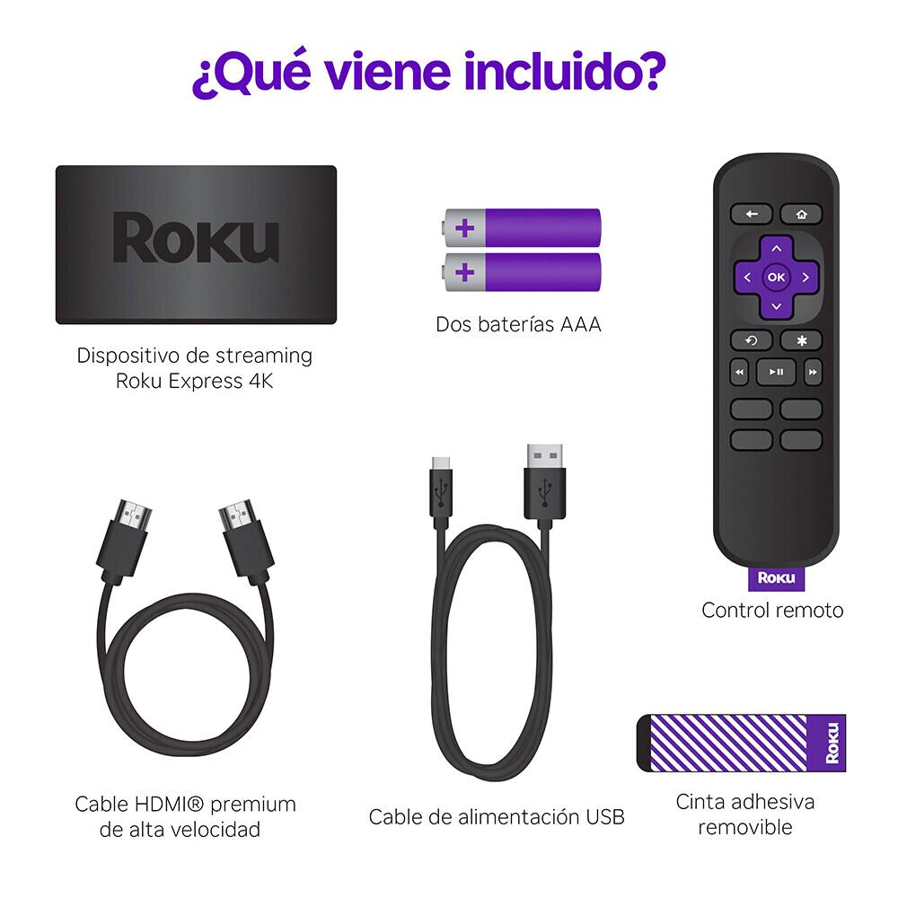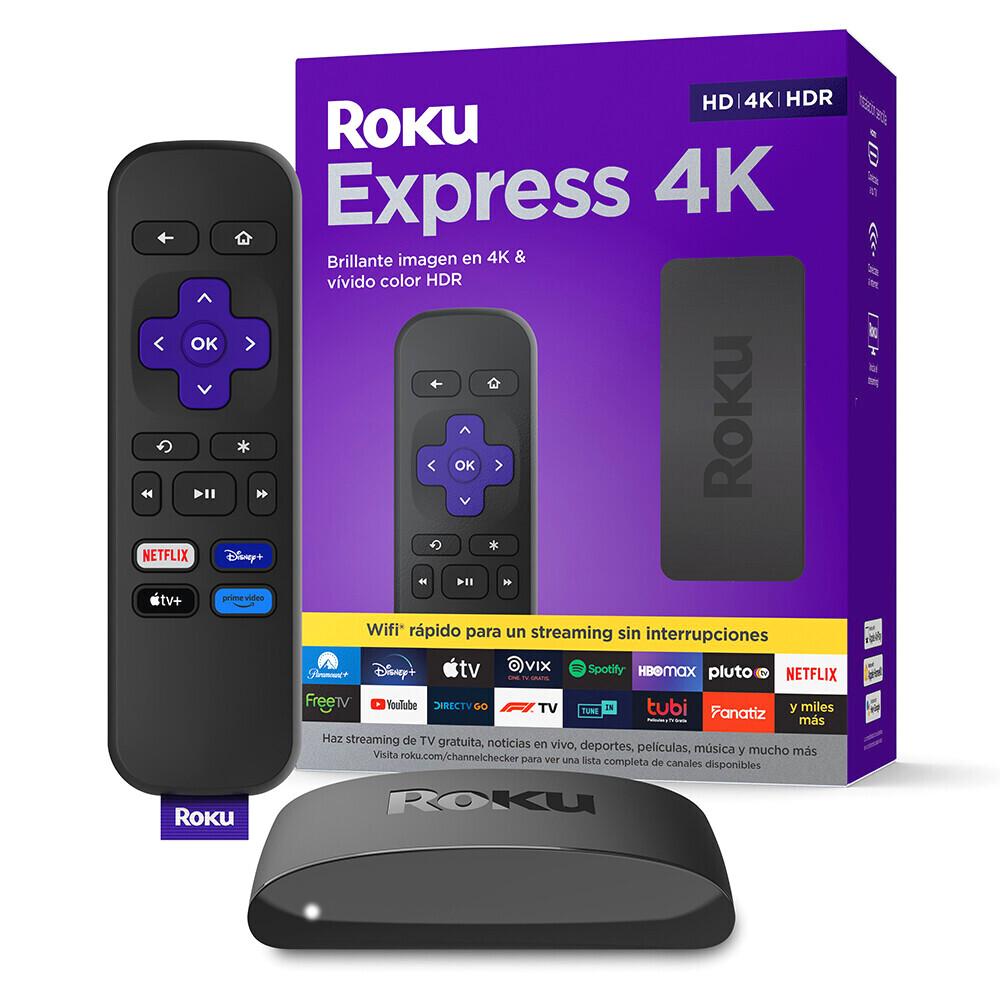 Roku Express 4K es la forma más fácil y económica de transmitir contenidos en calidad 4K y HDR en colores vivos. Disfruta de una experiencia de transmisión fluida con un rendimiento inalámbrico más rápido, incluso con varios dispositivos conectados a tu red de internet. Lo mejor es que transmitir desde tu Roku te da acceso a una amplia selección de TV gratis y por suscripción, incluyendo tus canales favoritos, como Netflix, HBO Max, YouTube, Disney Plus, Vix, Prime Video, Apple TV+ y muchísimos más. Es muy sencillo configurar tu dispositivo Roku, todo lo que necesitas está dentro del empaque, incluido el cable premium HDMI® de alta velocidad. Roku Express 4K también funciona con asistentes de voz populares. Pídele a Hey Google que abra tus canales, controle lo que ves y mucho más. También puedes controlar tu televisor usando la aplicación Apple Home o Siri si cuentas con dispositivos Apple. Además, comparte videos, fotos y música desde tu dispositivo Apple con AirPlay.