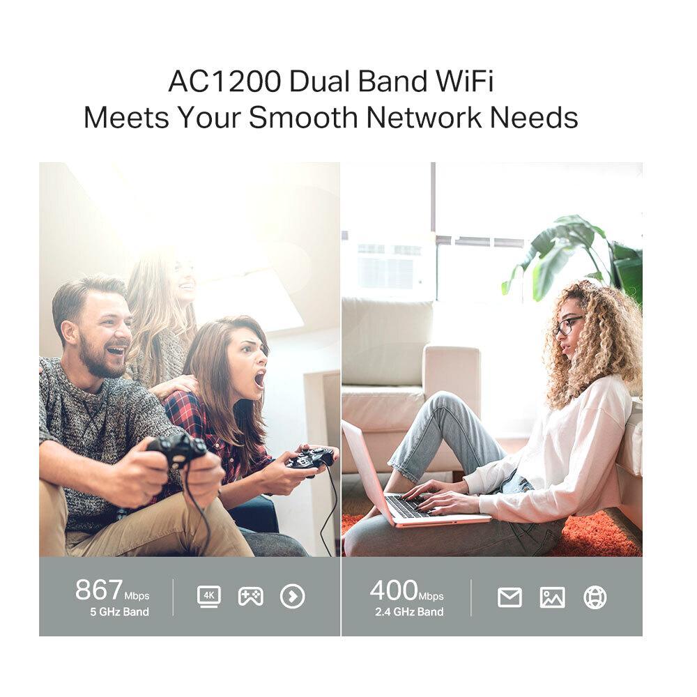 Los Routers WiFi 5 le permite conectar más dispositivos y transmitir simultáneamente con sus bandas duales de 2,4 GHz y 5 GHz. La banda de 2,4 GHz proporciona conexiones fiables para enviar correos electrónicos, navegar por Internet y otras tareas sencillas. La banda de 5 GHz ofrece mayor velocidad; ideal para aplicaciones de uso intensivo de medios, como transmisión de video y juegos en línea.