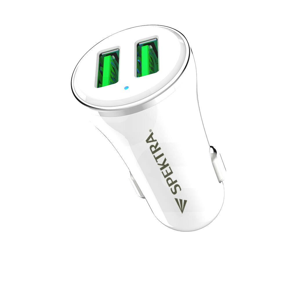 Cargador de auto Spektra carga rápida blanco con 2 puertos USB 3.0 y luz LED SK-144