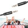 Cable de audio auxiliar con estándar internacional, 3.5mm plug, sonido sin distorsión, anti-oxidación, puedes conectar al auto MP3, smartphones, laptops, tablets, iPods y radios. Conductor de cobre des-oxigenado, ofrece la transmisión de alta velocidad y asegura el sonido sin distorsión, la longitud es de 1 metro.