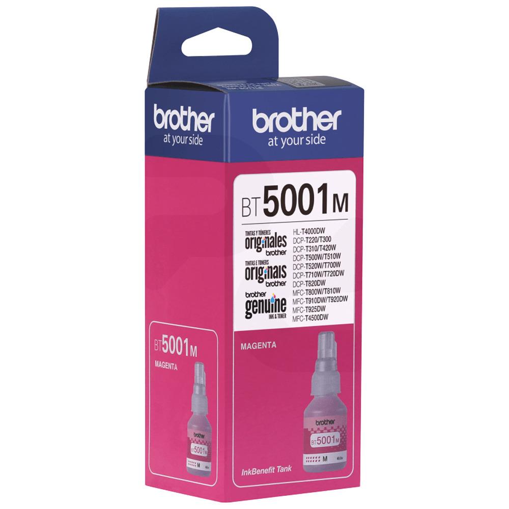 Botella de Tinta Original Brother BT5001M Magenta Hay muchas razones para usar consumibles originales, ya que ayudan a proteger la inversión de su equipo Brother, ya que el usar "tintas alternativas" pueden varias negativamente el rendimiento y potencialmente, causar daños a su máquina. Esta botella es bastante conveniente, con un excelente rendimiento y la confianza de Brother.