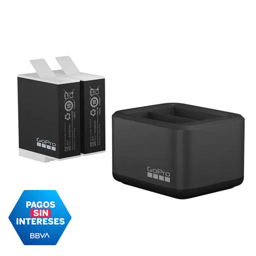 Incluye un cargador dual que te permite cargar dos baterías GoPro a la vez, además de dos baterías Enduro que puedes usar como repuestos o adicionales para la HERO12 Black o la HERO11 Black. También se pueden usar con la HERO10 Black para mejorar el rendimiento a bajas temperaturas y prolongar el tiempo de grabación a temperaturas moderadas.