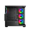 Fantásticos efectos de luz ARGB: 3 ventiladores ARGB con efecto infinito de 12cm incluidos en la parte lateral y 1 ventilador ARGB con efecto infinito en la parte trasera, con más patrones y más modos de color