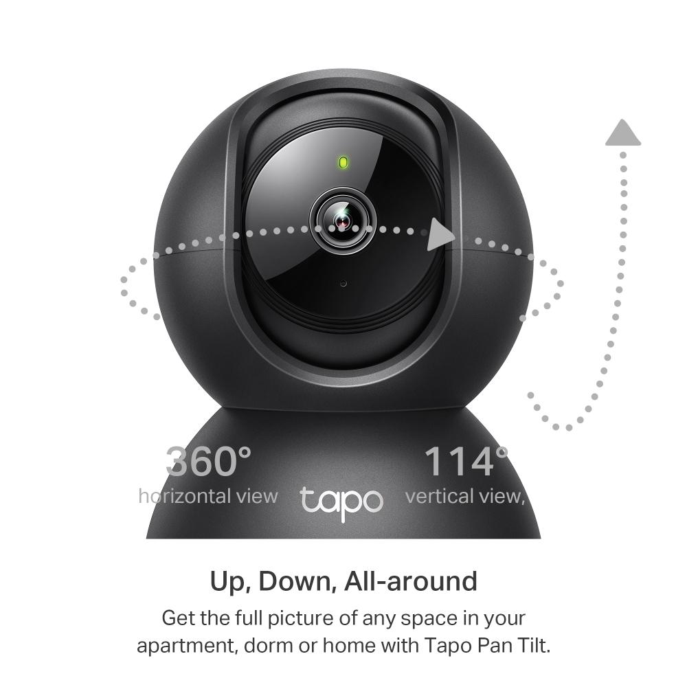 Visión panorámica 360°: Controla la cámara desde la app Tapo y obtén una vista completa del entorno con movimientos horizontales y verticales.