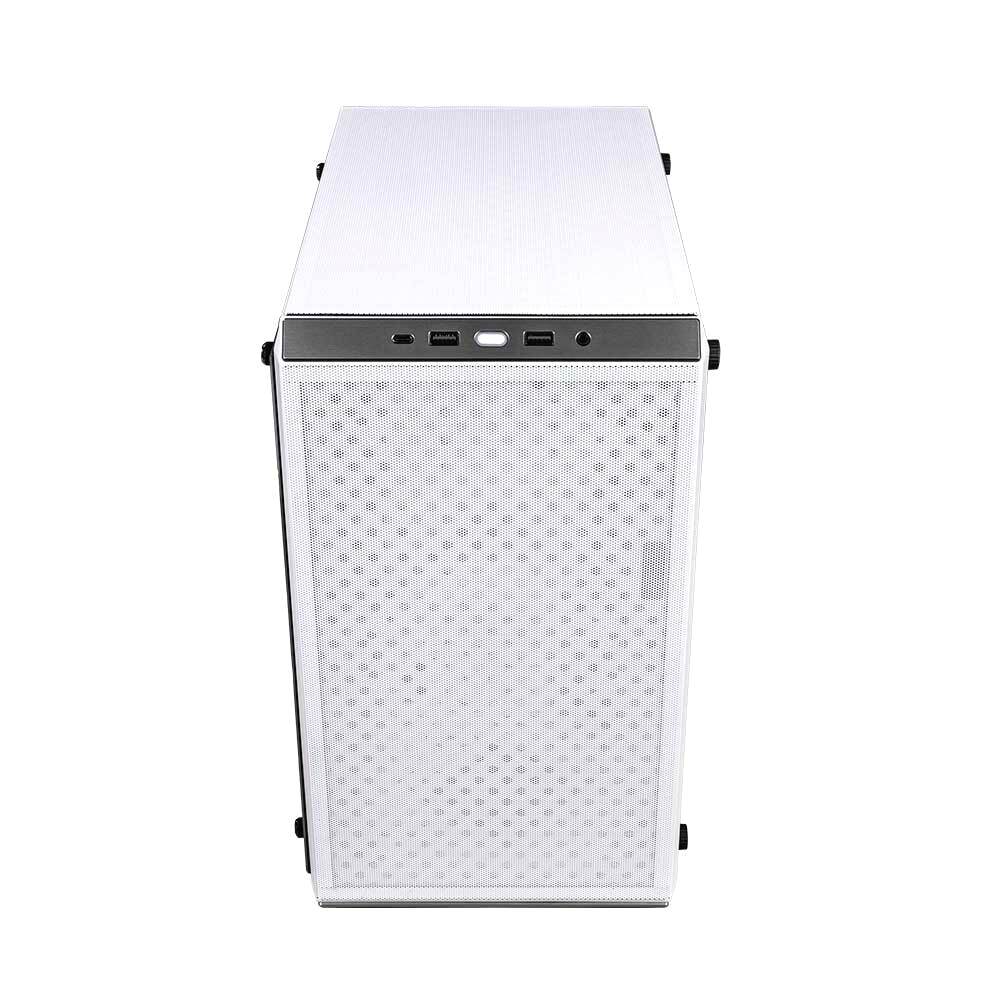 Muestre su construcción a través del panel lateral de vidrio templado de 4 mm de grosor, que se instala fácilmente con tornillos de mariposa.