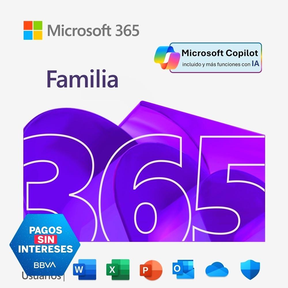 Suscripción para una a seis personas que incluye hasta 6 TB de almacenamiento en la nube (1 TB por persona), potentes aplicaciones de productividad, herramientas de creatividad y seguridad digital, ahora impulsadas con Inteligencia Artificial, todo en un solo plan.