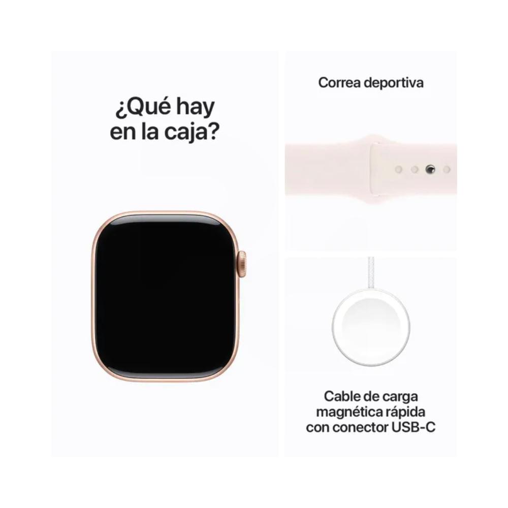 Elegante, potente y más delgado que nunca. El Apple Watch Series 10 de 42 mm en aluminio color Oro Rosa con correa deportiva Light Blush (talla S/M) combina estilo, tecnología avanzada y funciones de salud líderes en su clase. Ideal para el día a día, entrenamientos y cuidado personal.