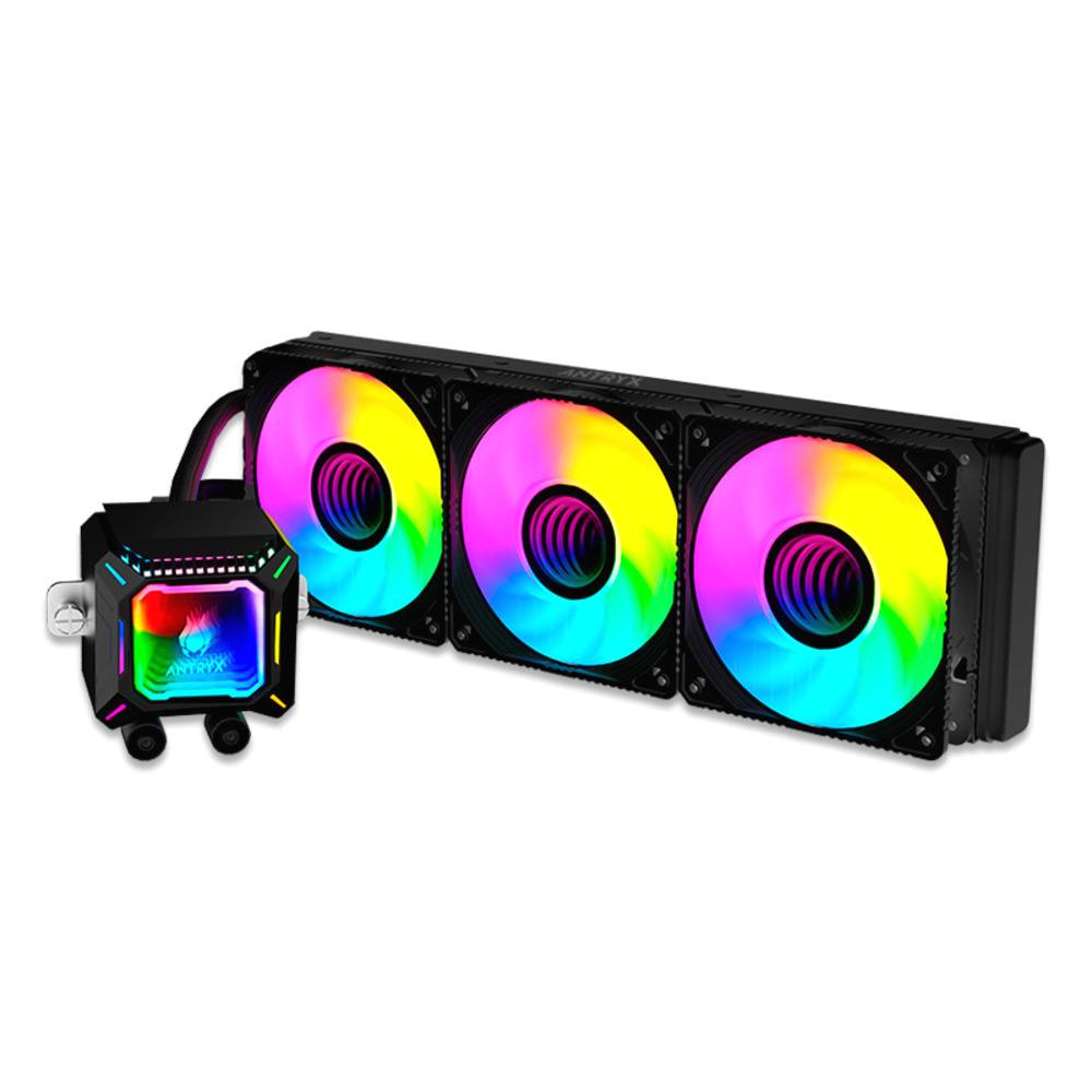 Efecto infinito: Iluminación con efecto infinito en BOMBA y VENTILADORES, con ARGB cada LED se controla individualmente, presentando más patrones y más modos de color, Compatible con ASUS AURA, ASROCK ARGB, MSI ARGB, GIGABYTE FUSION