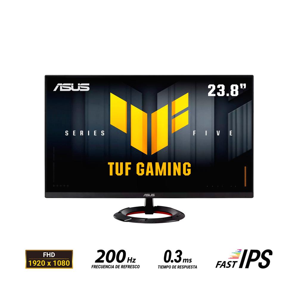 Monitor gaming de 23.8 pulgadas Full HD (1920x1080) con panel Fast IPS y frecuencia de actualización de 200Hz, diseñado para jugadores profesionales y una experiencia de juego inmersiva. Ofrece un tiempo de respuesta mínimo de 0.3ms GTG, tecnología ASUS Extreme Low Motion Blur (ELMB™) para reducir el ghosting y el desenfoque de movimiento, además de compatibilidad con FreeSync Premium para un juego fluido y sin desgarros. Incluye DisplayWidget Center para un control intuitivo de la configuración y funciones potenciadas por inteligencia artificial para mejorar la experiencia de juego.