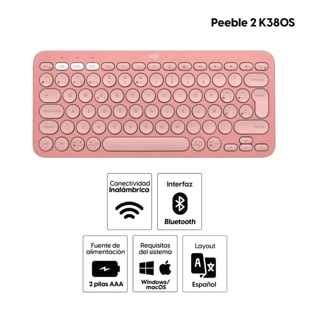 Teclado Logitech Pebble 2 K380s Bluetooth – Rosa